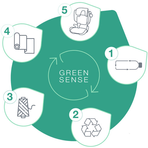 Для изготовления ткани для 1 автокресла требуется 32 пластиковые бутылки, которые превращаются в мягкую пряжу для дальнейшего производства из нее чехлов премиум-класса.